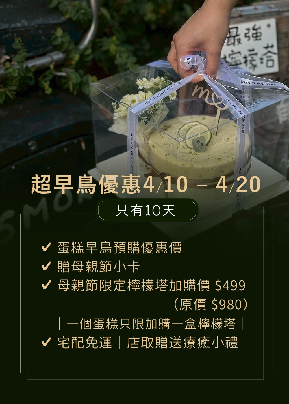 (訂購母親節蛋糕加購檸檬塔只要499(6吋原價980)|一顆蛋糕+一份檸檬塔讓整體風味更平衡、不膩口